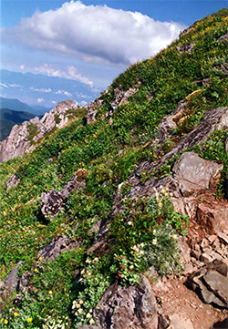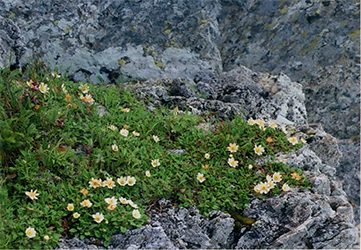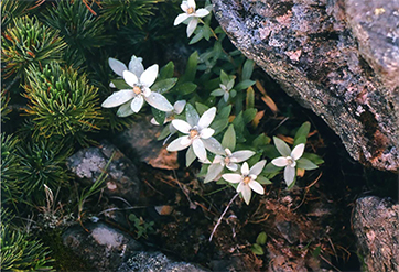 花は北岳肩ノ小屋から北岳山荘の間に多い。特に稜線東側トラバース道。