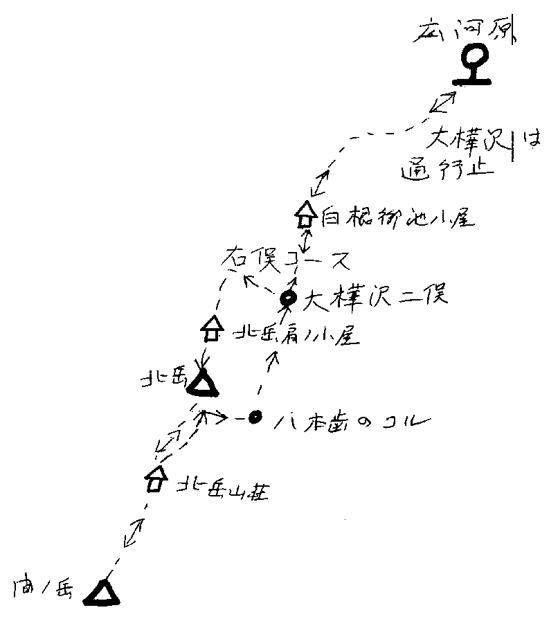 広河原〜大樺沢二俣間通行止。